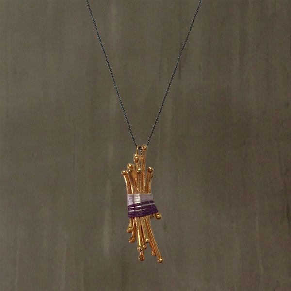 Nature inspired "Bundle of Woods" pendant necklace is handcrafted with 24K Gold plated Bronze.