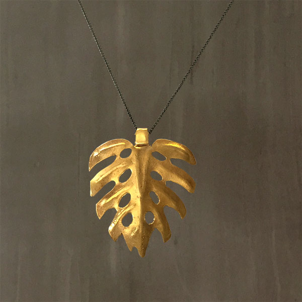 Nature inspired, exotic African Leaf pendant handcrafted with 24K Gold plated Bronze.