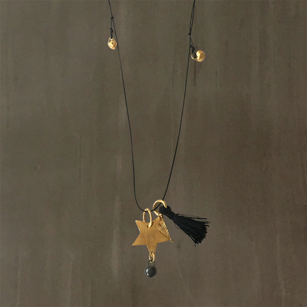 Paired with a Black silk tassel, and detailed with the Aleema signature heart tag. They hang from a thin Black waxed sliding cord which adjusts from 60 to 100 cm length (23.6 to 39 in).