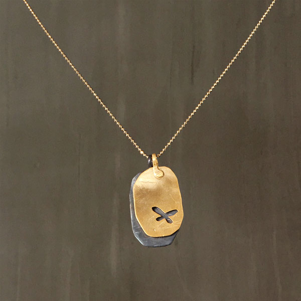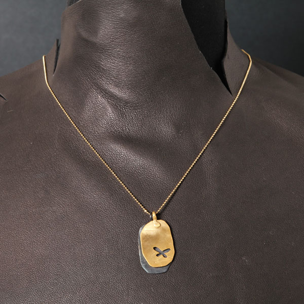 Two-tone rustic Dog Tag pendant necklace handcrafted from hammered Bronze.