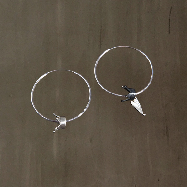 Features handcrafted 925 Sterling Silver crowns on each hoop, of which one is with Black Rhodium plated finish.  Detailed with Aleema signature heart tag.