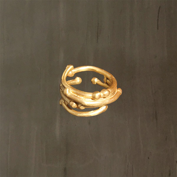 Nature inspired piece, handcrafted piled wood sticks form this unique band made with 925 Sterling Silver finished with 24K Gold plating.